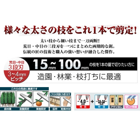 SAMURAIOriginal price ¥4,843 - Original price ¥4,843Original price¥4,843¥4,843 - ¥4,843Current price ¥4,843| /From a thick branch to a thin branch! A groundbreaking saw that combines the rough and middle three-stage blades into one. A masterpiece that combi...