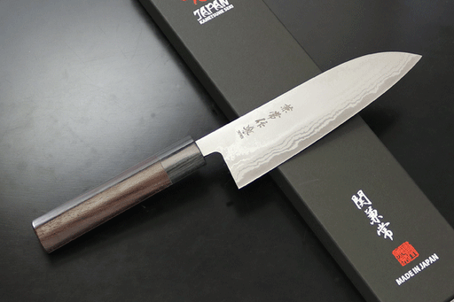 Seki Kanetsune Forged Aogami 11 layer Damascus Rosewood Pattern Santoku Knife 165 mm KC-462