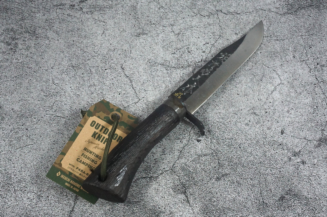 Shuzon Shozo Blue Forged Ken-nata Double-edged Hunting Knife 135 mm w/ Black Leather Sheath